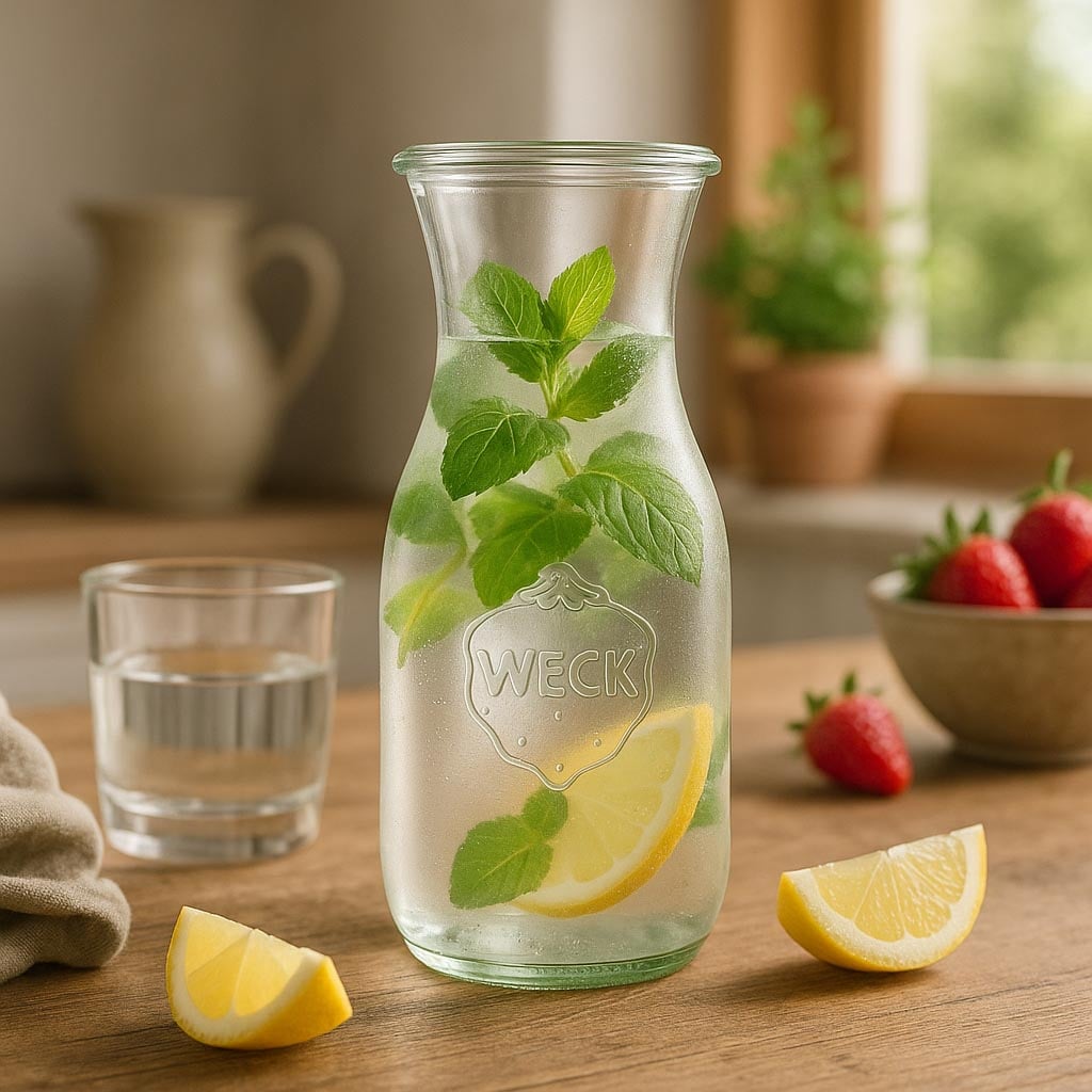 Zaobljeni rub otvora WECK tegli je ključna osobina tradicionalnih flaša za sok. Omogućava jednostavno i pouzdano zatvaranje pomoću staklenog poklopca, gumice i karakterističnih stezaljki za konzerviranje. Ravnomeran, zaobljen oblik otvora pruža optimalnu zaptivku i lako čišćenje. U našem asortimanu pronaći ćete odgovarajuće poklopce i gumice WECK za različite flaše i namene.
