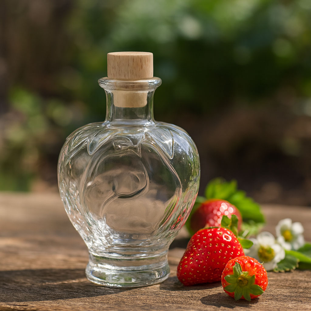 Bočica sa motivom „Jagoda“ oduševljava svojim šarmantnim, detaljno vernim dizajnom i donosi slatkoću i svežinu popularnog letnjeg voća u elegantan stakleni oblik. Izrađena od visokokvalitetnog prozirnog stakla, savršeno je pogodna za fine žestoke napitke, voćne rakije ili izuzetne likere. Harmonično strukturisana površina podseća na prirodnu teksturu jagode i čini bočicu pravim ukrasom. Zahvaljujući plutenom čepu, sadržaj se može sigurno i stilski zatvoriti.
