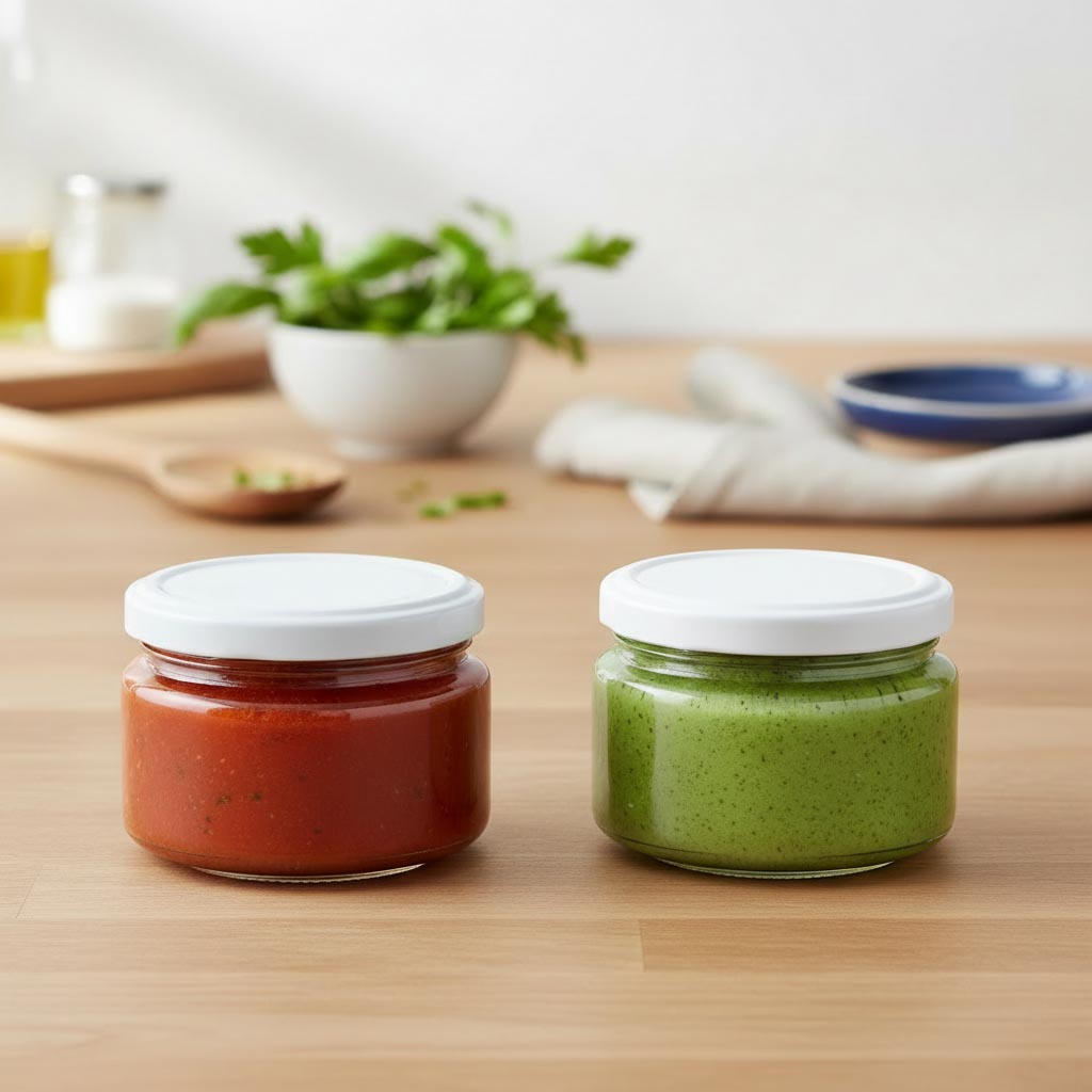 Plitko okruglo staklo zapremine 280 ml odlikuje se elegantnim oblikom i idealno je za punjenje kobasica, džemova i sosova, kao i za prezentaciju dezerta u čaši. Kompatibilno je sa poklopcem na zavrtanje (TO 82). Proizvod je pogodan za mašinu za pranje sudova, otporan na hladnoću i toplotu, kao i za mikrotalasnu i rernu.