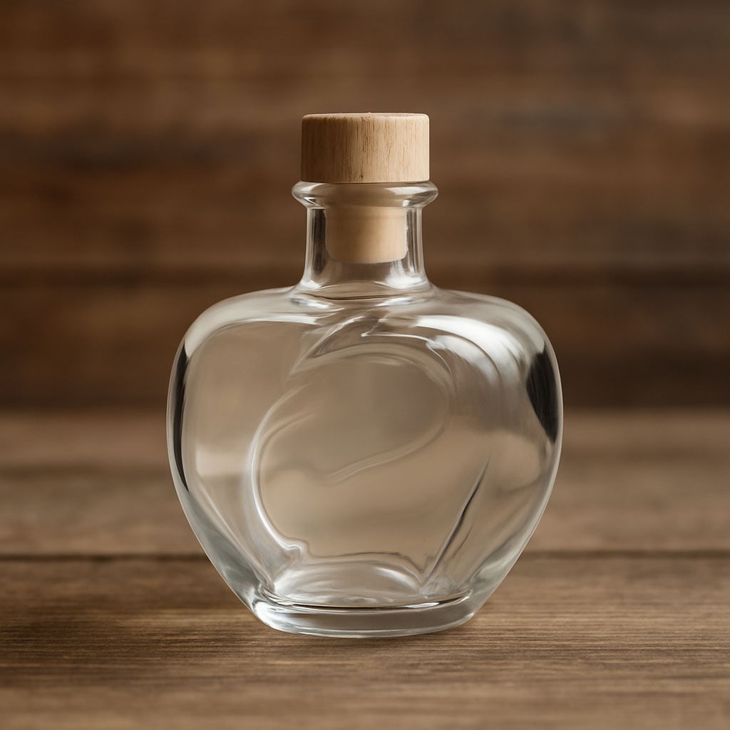 Bočica sa motivom „Jabuka“ oduševljava svojim jedinstvenim oblikom u obliku jabuke i predstavlja savršen izbor za plemenite voćne rakije i likere. Njen detaljno izrađen dizajn od kvalitetnog prozirnog stakla naglašava prirodni karakter sadržaja i čini je pravim ukrasom. Čep od plute obezbeđuje stilsko i sigurno zatvaranje, dok harmoničan oblik ističe vrednost proizvoda.
