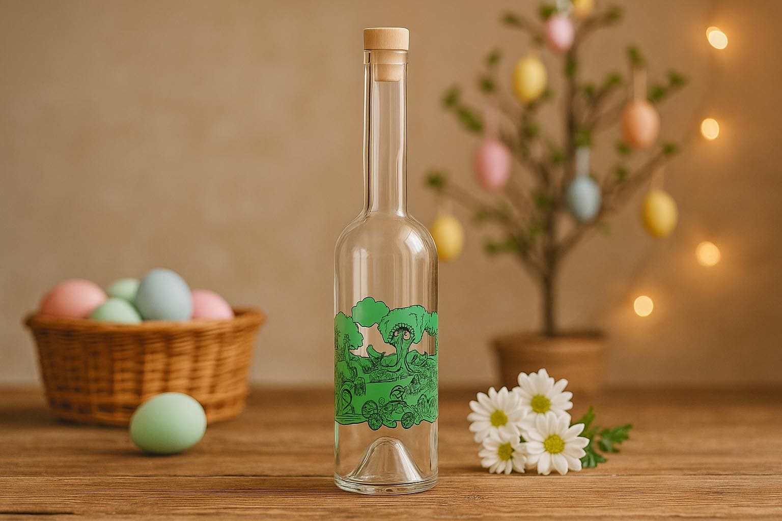 Caše i flaše 500 ml staklena flaša 'Opera', motiv: jajčani liker, otvor: čep